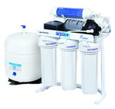 این فیلتر ، در واقع فیلتر اصلی دستگاه آکواجوی است. فیلتر اسمز معکوس، از چندين لايه غشاء نيمه تراوا كه به دور يک لوله مركزی پيچيده شده اند تشكيل شده است. این غشاء (ممبران) دارای منافذی به اندازه یک دهم نانومتر ( 0،0001 میکرون) است.چون ناخالصی های محلول در آب، قادر به عبور از منافذ غشاء نيستند از اين رو در يك طرف غشاء آب تقريبا خالص وجود خواهد داشت كه راهي لوله مركزی شده و به سمت خروجی آب تصفيه شده هدايت می شود. در طرف ديگر لايه های غشاء، آب تغليظ شده از ناخالصی ها وجود خواهد داشت كه به سمت مجرای فاضلاب هدايت می شود.با روش اسمز معكوس مي توان املاح آب را 90 تا 98 درصد كاهش داد. نیترات، آرسنیک، سرب ، جیوه و سایر ناخالصی های محلول در آب و وفلزات سنگین مضر در آب در این مرحله از آب حذف می شوند. سختی مضر آب که باعث رسوب گذاری در کتری و چای ساز و … می شود حذف شده و آب سنگین به آب سبک و گوارا تبدیل می شود.